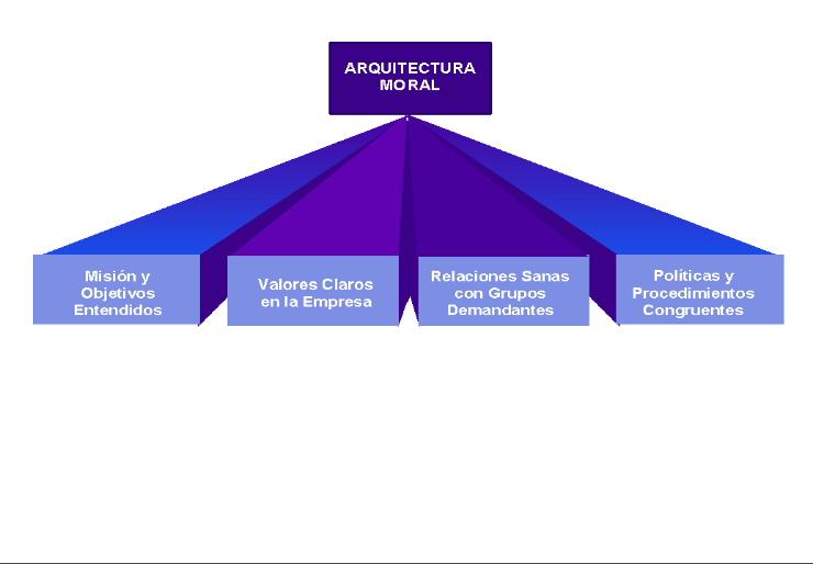 | La Arquitectura Moral comprende la misión y valores del grupo, su entendimiento claro y aceptación en toda la organización y sus grupos demandantes, así como la forma en que evolucionan para adecuarse a un entorno cambiante. |